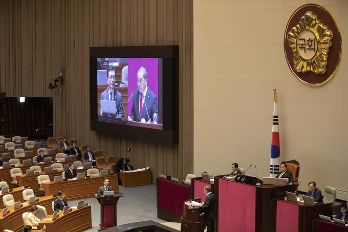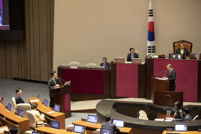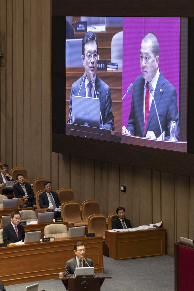 조세영 외교부 제1차관(왼쪽)이 27일 오후 서울 여의도 국회에서 열린 제371회 국회(정기회)제3차 본회의 대정부질문(외교·통일·안보에 관한 질문)에 출석해 자유한국당 심재철 의원 질의에 답하고 있다.