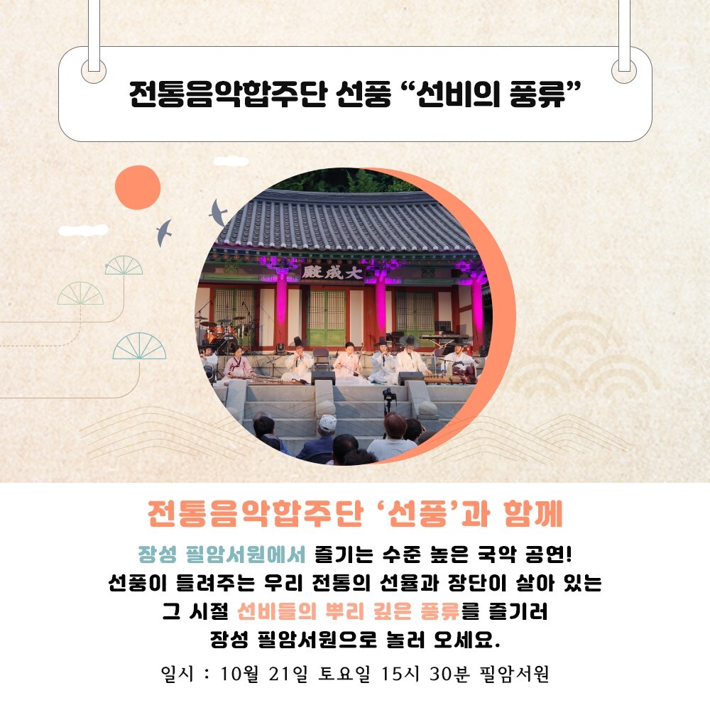 | ▲ 오는 21일 장성 필암서원서 열리는 '전통음악합주단' 공연 안내문 [장성군 제공] |
