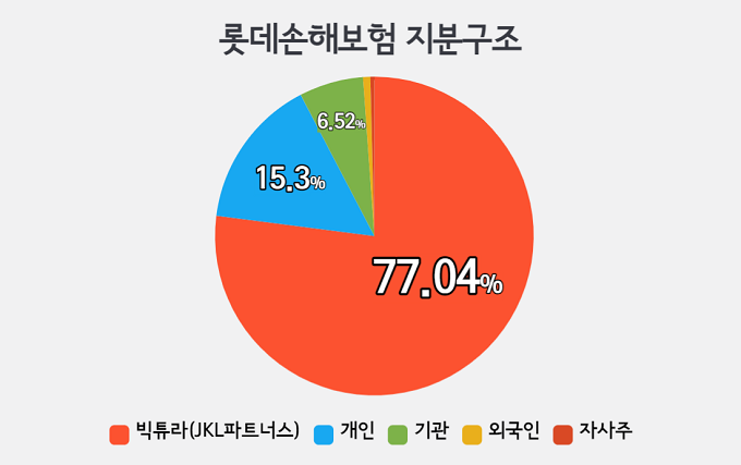 19일 금융권에 따르면 롯데손보 대주주인 JKL파트너스는 롯데손보 매각을 위한 주관사 선정작업에 돌입한 것으로 알려졌다. 사모펀드(PEF)인 JKL파트너스가 설립한 '빅튜라'는 롯데손보의 지분 77.04%를 보유하고 있다.