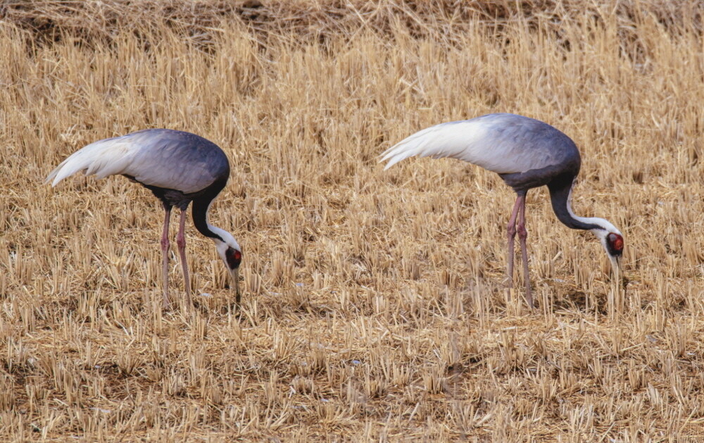 지난해 이맘때에도 확인된 합천의 재두루미는 올해도 찾아와 농경지와 직선거리 400~600m 거리의 황강을 번갈아 날아다니며 먹이 활동을 하고 있다.
