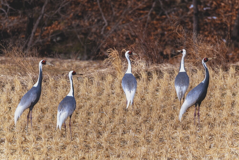경남 합천군 율곡면 일대의 한 농경지에서 천연기념물로 지정돼 있는 겨울 철새 재두루미 가족이 포착됐다.