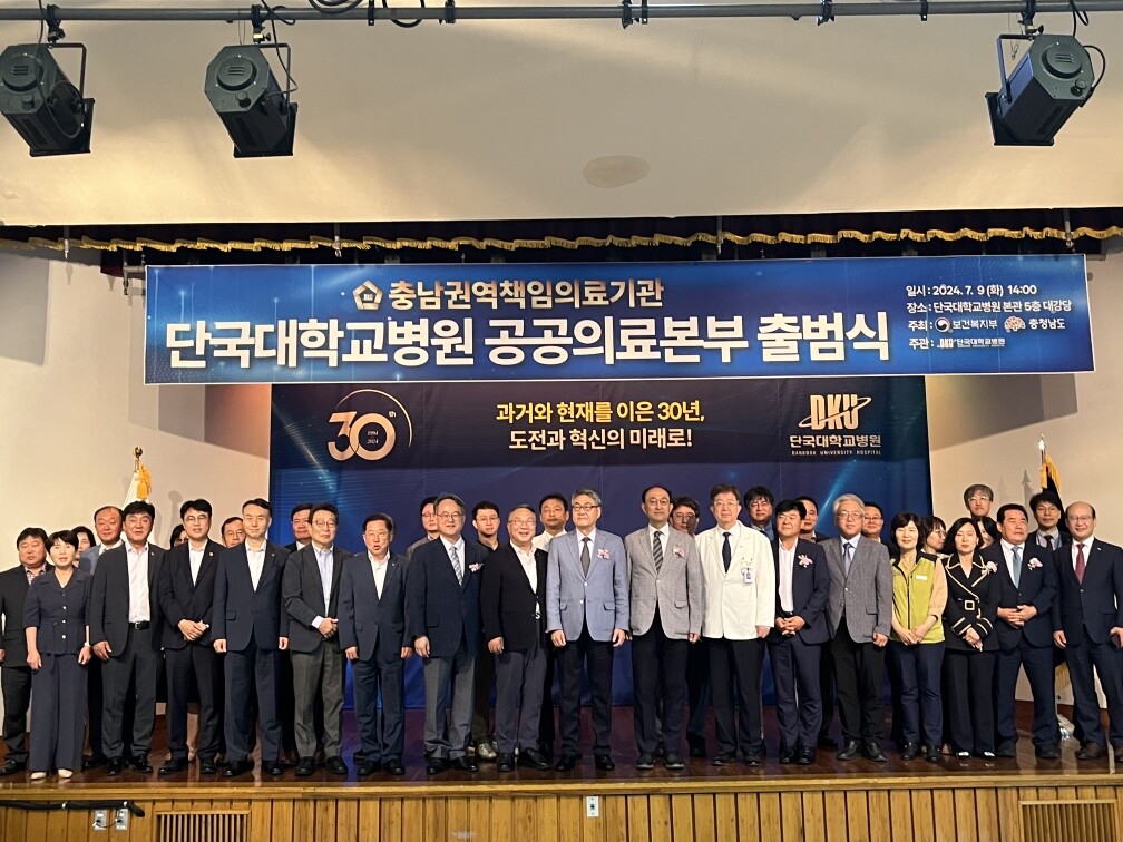충남도와 단국대병원 공공의료본부는 9일 천안 단국대병원 본관 5층 대강당에서 '단국대병원(권역 책임의료기관) 공공의료본부 출범식'을 개최했다.