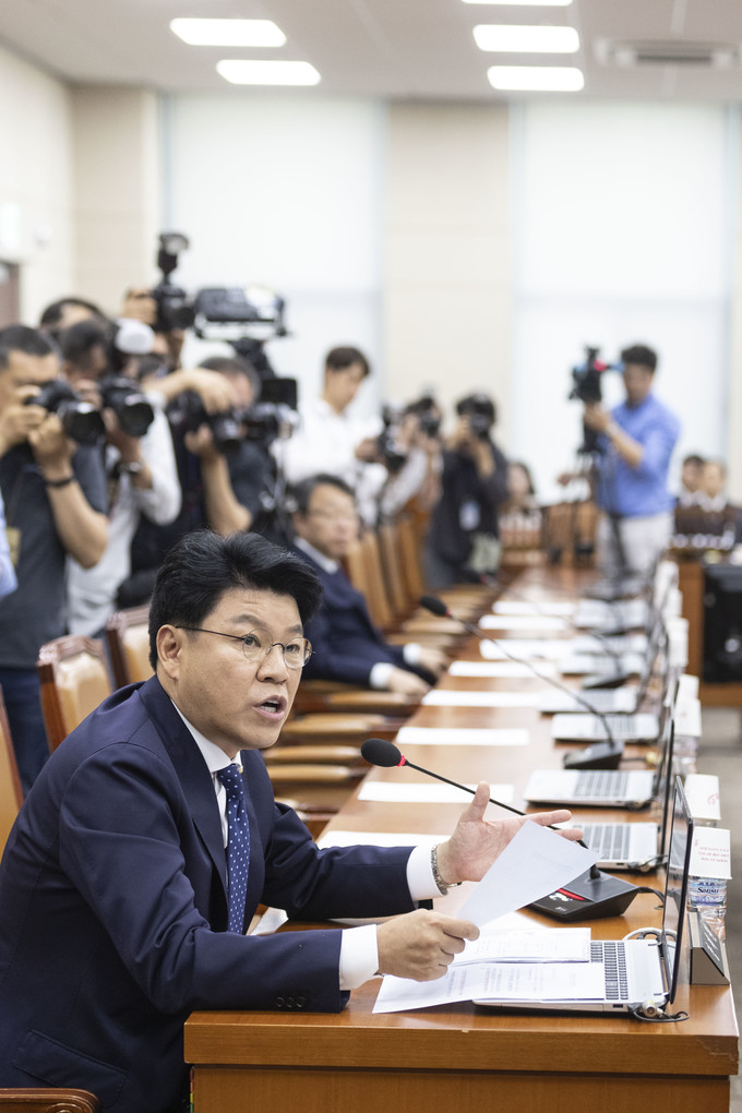 정치개혁특별위원회 활동기한 연장과 운영방안을 논의하기 위해 20일 오후 서울 여의도 국회에서 정개특위 전체회의가 열린 가운데 자유한국당에서 유일하게 회의에 참석한 장제원 간사가 의사진행발언을 하고 있다.