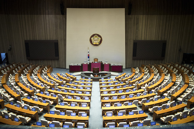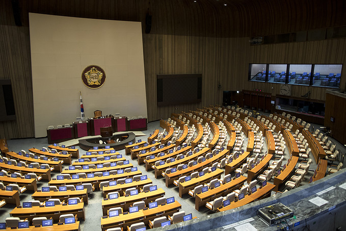 국회는 추가경정예산안과 일본 수출규제 철회 촉구 결의안 등을 처리하기 위해 오후 4시부터 본회의를 열기로 했지만 합의가 틀어지면서 1일 오후 서울 영등포구 국회의사당 본회의장이 비어있다. 여야는 오후 8시로 본회의를 연기한 상태이다.