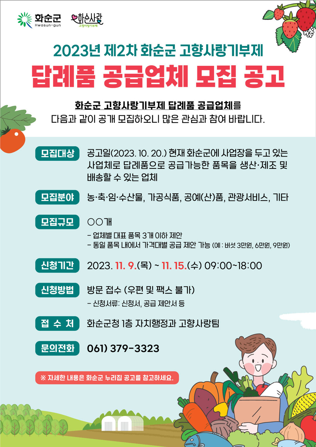 | ▲ 화순군 고향사랑기부제 답례품 공급업체 모집 공고문 [화순군 제공] |