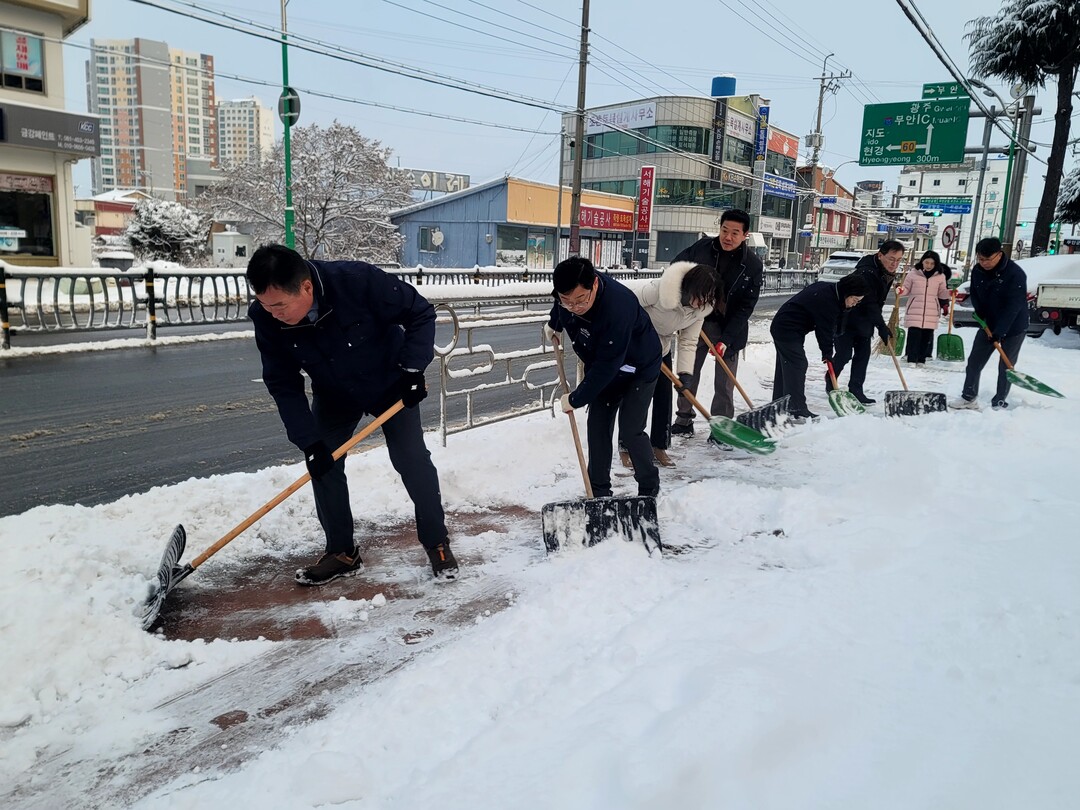 김 군수는 이날 이른 아침부터 정현구 부군수를 비롯한 간부공무원과 함께 무안읍 중앙로 등 주요 시가지에 쌓인 눈을 치우며 제설 작업에 동참했다.