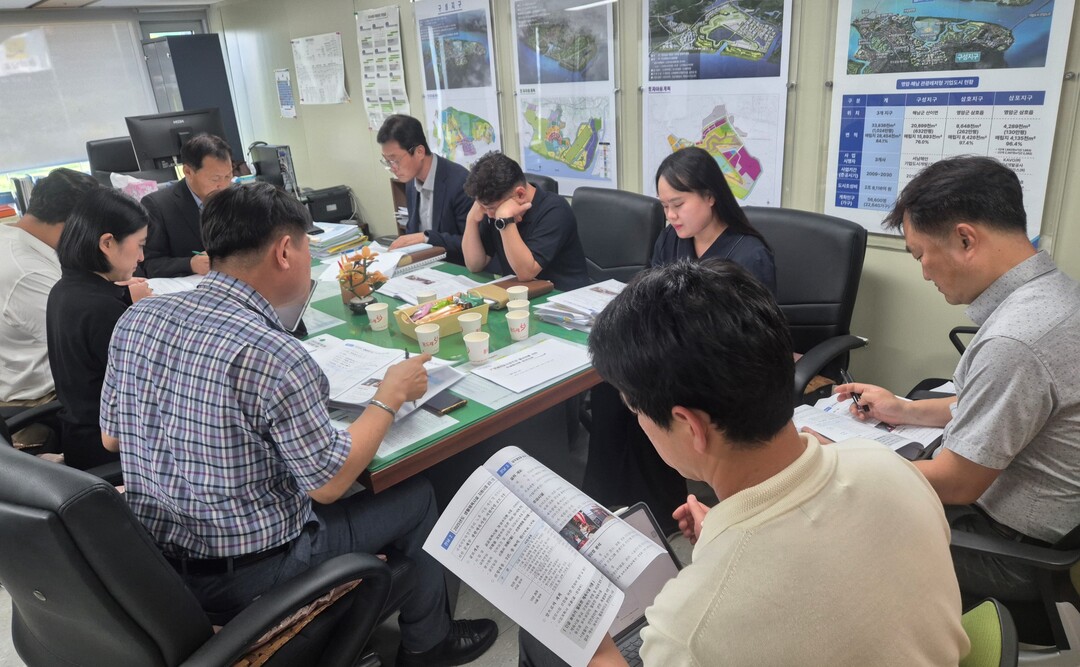 | ▲ 전라남도 기업도시담당관 직원들이 CJ·영암군과 상설협의체를 구성하는 내용의 회의를 하고 있다. [전남도 제공] |
