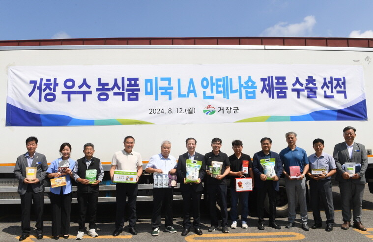 경남 거창군은 12일 남상면 소재 ㈜하늘바이오에서 구인모 군수를 비롯해 수출업체 관계자들이 참석한 가운데 '우수 농식품 미국 LA 안테나숍' 운영을 위한 선적식 행사를 개최했다.
