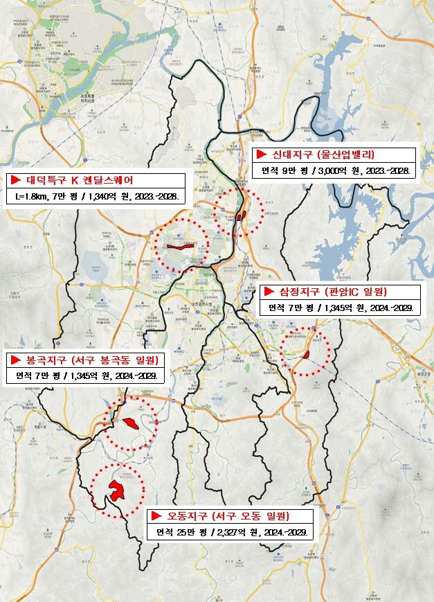 삼정·오동·봉곡·신대 지구와 대덕특구도 발표
