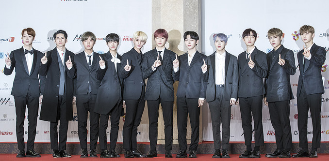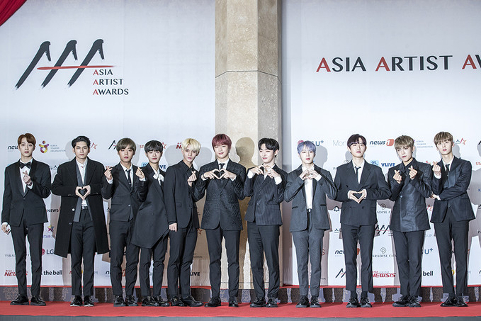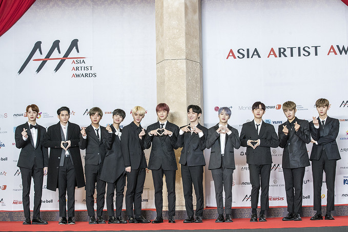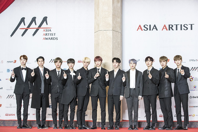 그룹 워너원이 28일 오후 인천 중구 파라다이스시티 아트스페이스 플라자에서 열린 ‘2018 AAA(Asia Artist Award)’ 레드카펫 행사에서 포즈를 취하고 있다.
