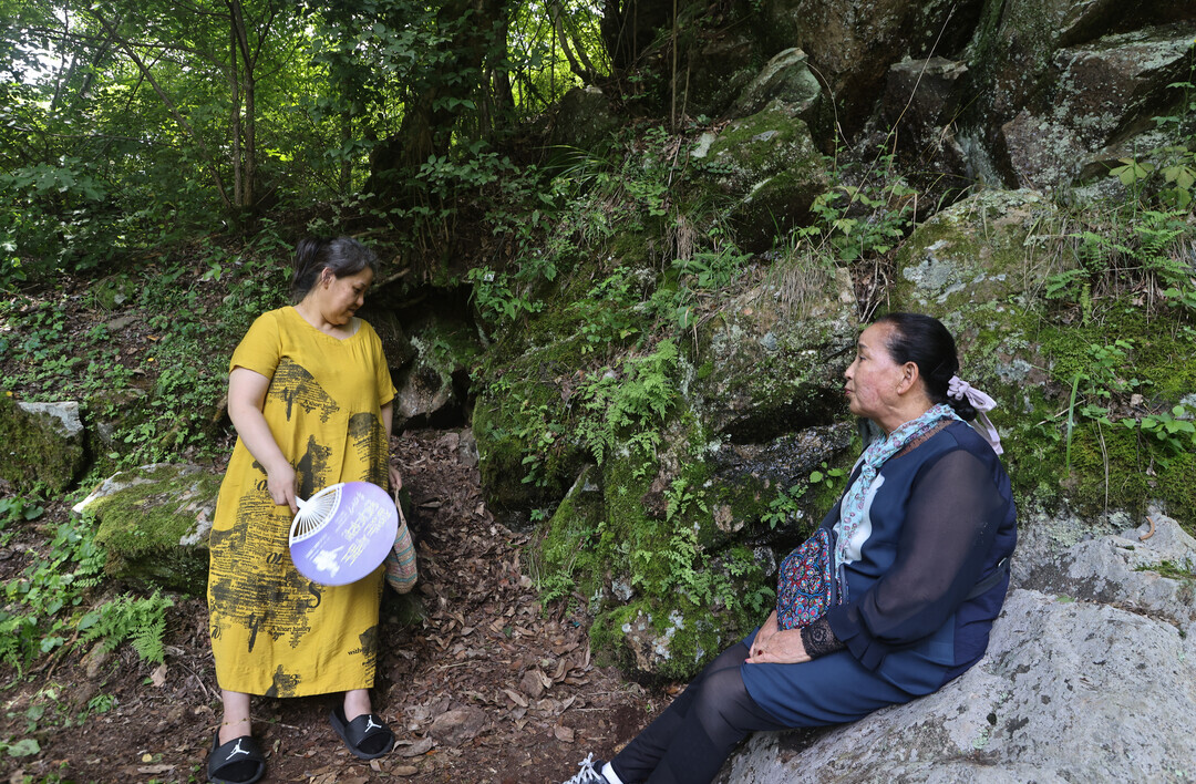 | ▲ 7월 마지막 일요일인 28일, 국가지정문화재 천연기념물인 경북 의성군 춘산면 '빙계리 얼음골'을 찾은 관광객들이 암괴에서 나오는 찬바람을 맞으면 더위를 식히고 있다. [이상훈 선임기자] |