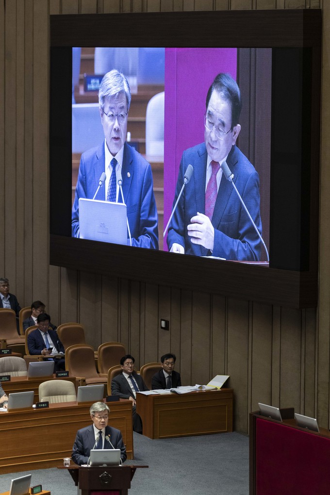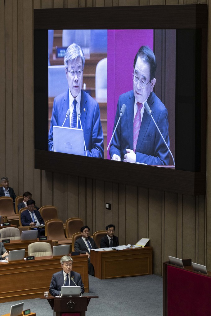 이재갑 고용노동부 장관(왼쪽)이 11일 오후 서울 여의도 국회에서 열린 본회의 대정부 질문에 출석해 자유한국당 박명재 의원 질의를 듣고 있다.
