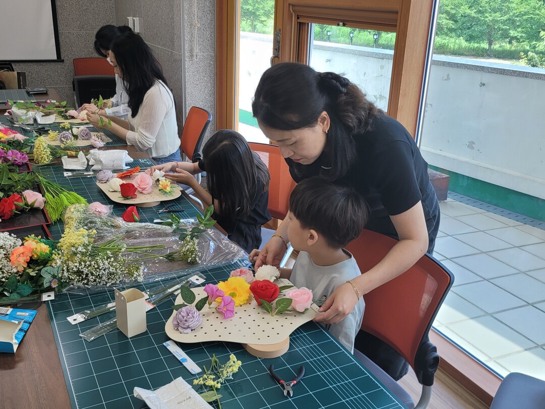 | ▲ 전남 화순군이 지난 12일 화순군립운주사문화관에서 전시 참여 작가 김무아와 함께하는 창작 체험 프로그램 '버려진 자리에서, 나를 피우다'를 운영하고 있다. 참여자들은 김 작가의 전시 해설을 들은 뒤, 일상에서 쉽게 접할 수 있는 소재를 활용한 플라워패널 만들기 체험에 참여해 전시의 주제를 몸소 느끼는 시간을 가졌다. [화순군 제공] |
