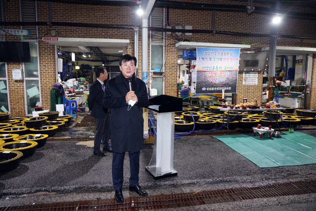 김성 전남 장흥군수가 6일 정남진수산물위판장에서 열린 2025년 초매식과 풍어제에 참석해 어업인 안전 조업과 풍어를 기원했다.