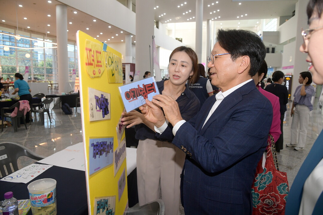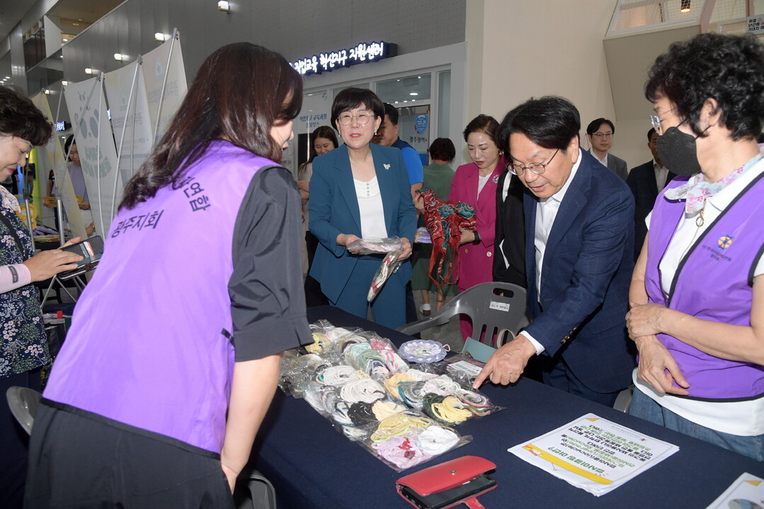 | ▲ 강기정 광주광역시장이 30일 오후 시청 시민홀에서 열린 양성평등주간 기념행사에 참석해 참석자들과 함께 행사장 라운딩을 하고 있다. [광주광역시 제공] |