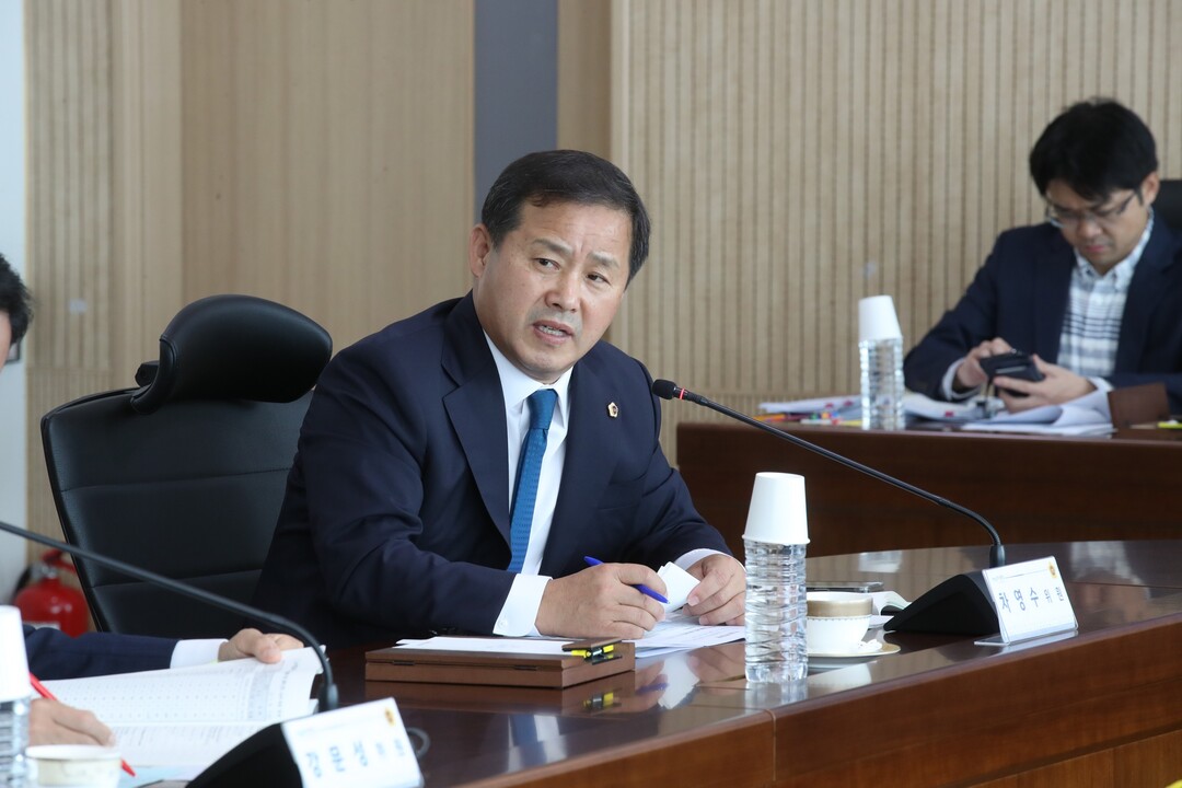 | ▲ 전라남도의회 차영수(의회운영위원장, 강진) 의원이 지난 3일 전남개발공사 행정사무감사에서 질의를 하고 있다. [전남도의회 제공] |