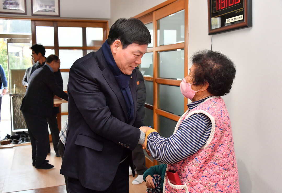| ▲ 정철원 전남 담양군수가 고서면 운교리를 방문해 주민과 악수하며 안부를 묻고 있다. [독자 제공] |