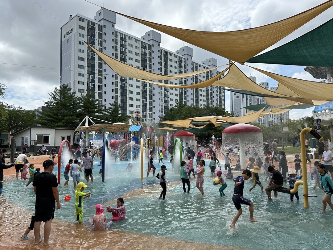 불무공원 물놀이장에는 조합놀이대, 워터드롭, 바닥분수 등 다양한 물놀이 시설과 탈의실, 그늘막 등 편의시설도 설치해 다음달 25일까지 운영한다.