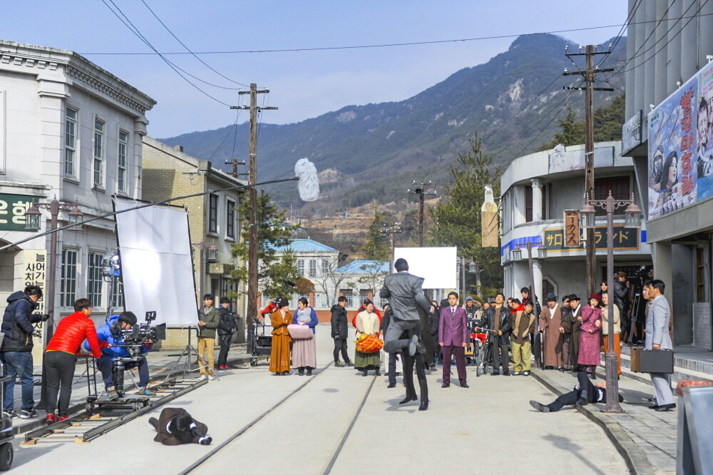 | ▲ 합천영상테마파크 30년대 시대 세트장에서 영화를 촬영하고 있다. [합천군 제공] |