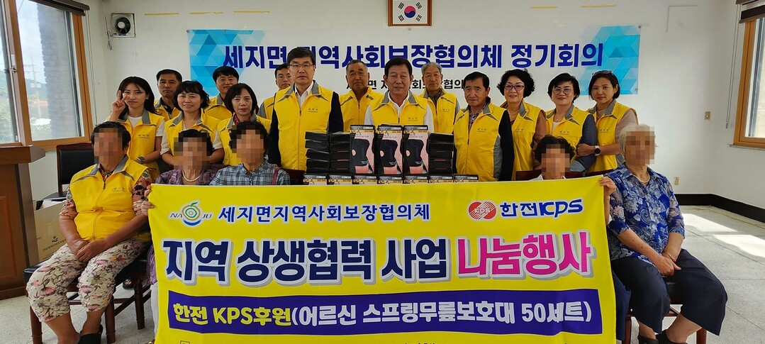 21일 세지면에 따르면 양 기관·단체는 최근 무릎관절염을 앓고 있는 지역 어르신을 위한 ‘스프링 무릎보호대’ 50개를 65세 이상 어르신 가구에 전달했다.