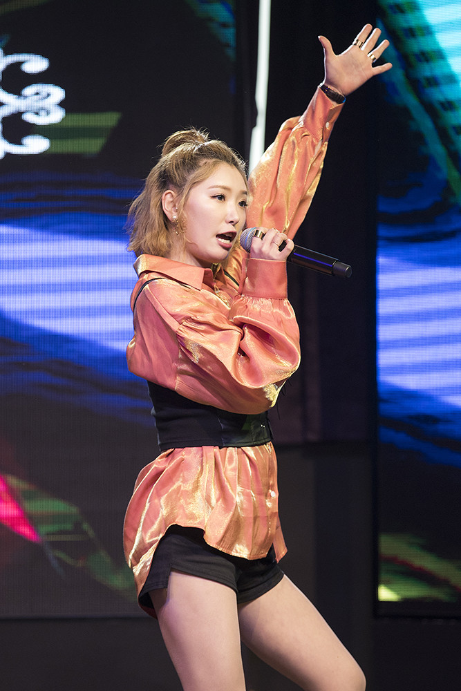 걸그룹 아이러브(ILUV) 다현이 29일 오후 서울 송파구 롯데월드타워에서 열린 미디어 쇼케이스에서 무대를 선보이고 있다.