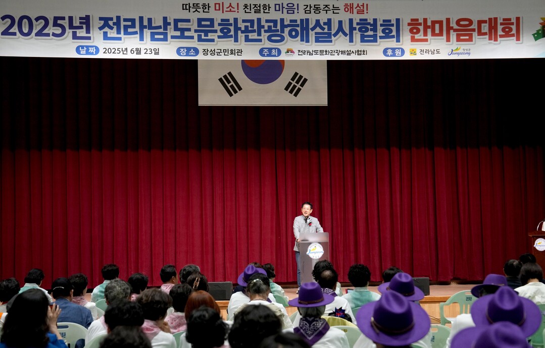 | ▲ 김영록 전라남도지사가 23일 오후 장성군민회관에서 열린 '전남문화관광해설사협회 한마음대회' 행사에서 인사말을 하고 있다. [전남도 제공] |