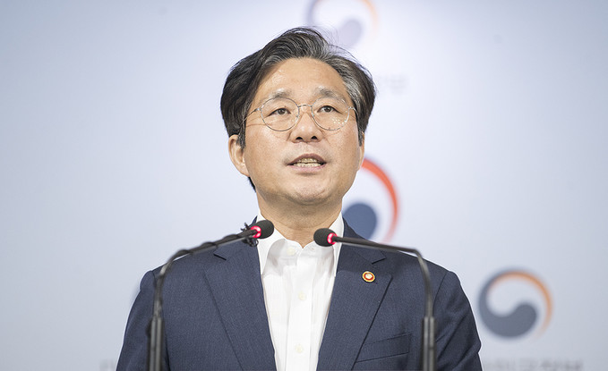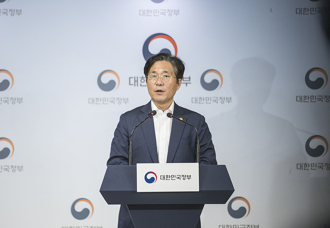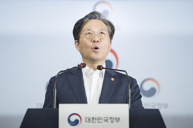 성윤모 산업통상자원부 장관이 9일 오후 서울 종로구 정부서울청사에서 일본 수출규제강화 조치 관련 브리핑을 하고 있다.