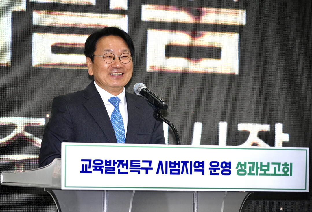 | ▲ 강기정 광주광역시장이 20일 홀리데이인 광주호텔에서 열린 '교육발전특구 시범지역 운영 성과보고회'에 참석해 인사말을 하고 있다. [광주광역시 제공] |