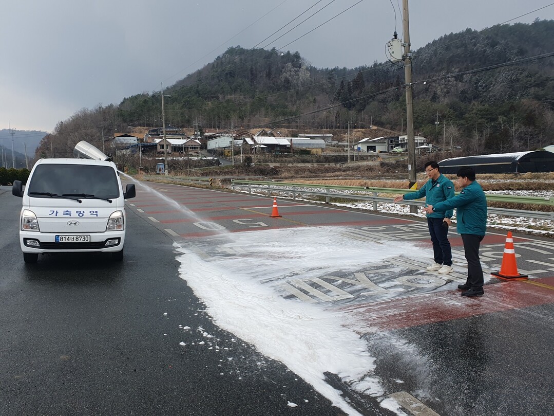 | ▲ 이천영 전남 장흥군 부군수가 구제역 확산에 따라 소독현장을 찾는 등 긴급 방역 현장점검에 나서고 있다. [장흥군 제공] |