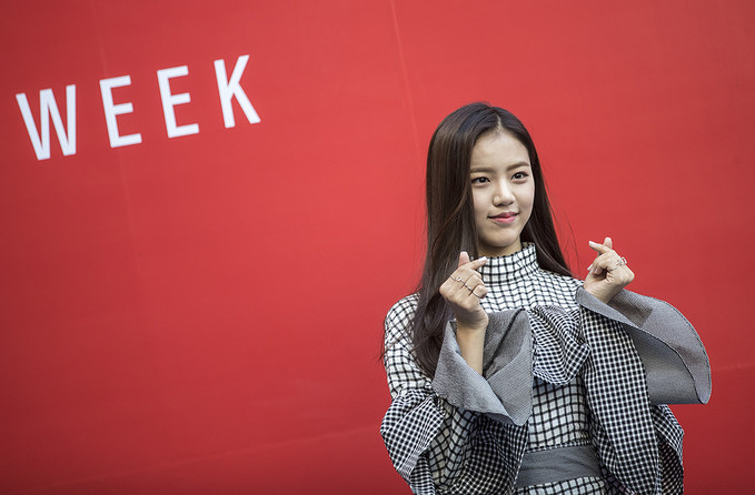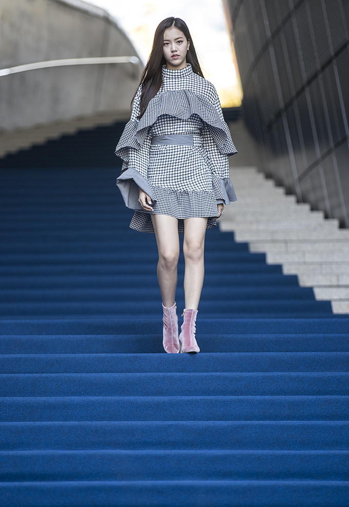 그룹 공원소녀 레나가 19일 오전 서울 동대문디자인플라자(DDP)에서 열린 '헤라서울패션위크 S/S 2019’ 카이(KYE) 패션쇼에 참석해 포토타임을 가지고 있다.