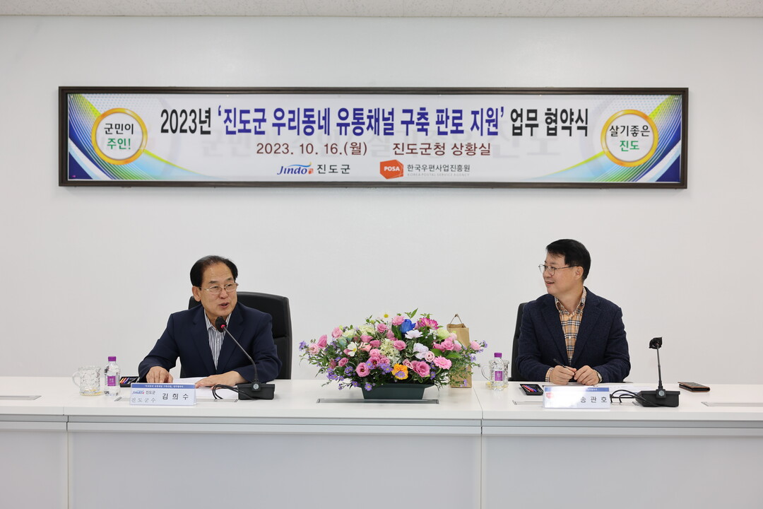 이날 협약식에는 2023년 진도군 우리동네 유통채널 구축 사업의 활성화를 위해 송관호 한국우편사업진흥원장이 참석했다.