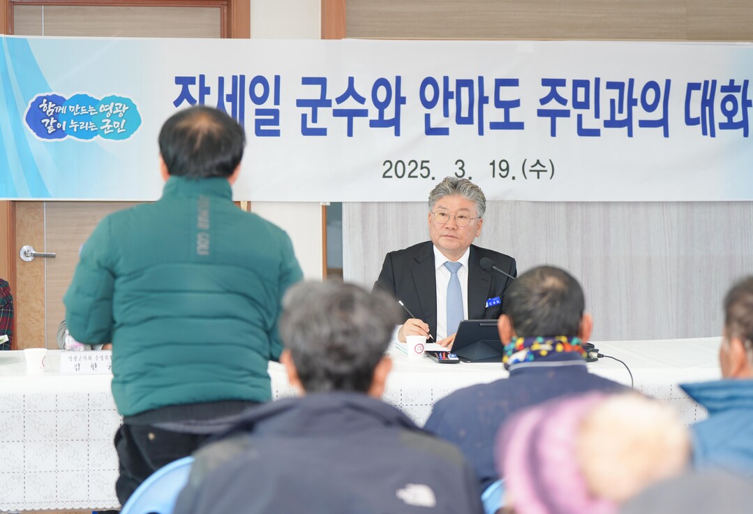 | ▲ 장세일 전남 영광군수가 19일 2025 '찾아가는 낙월면민과의 대화'를 위해 안마도와 송이도를 방문해 주민 의견을 청취하고 있다. [영광군 제공] |