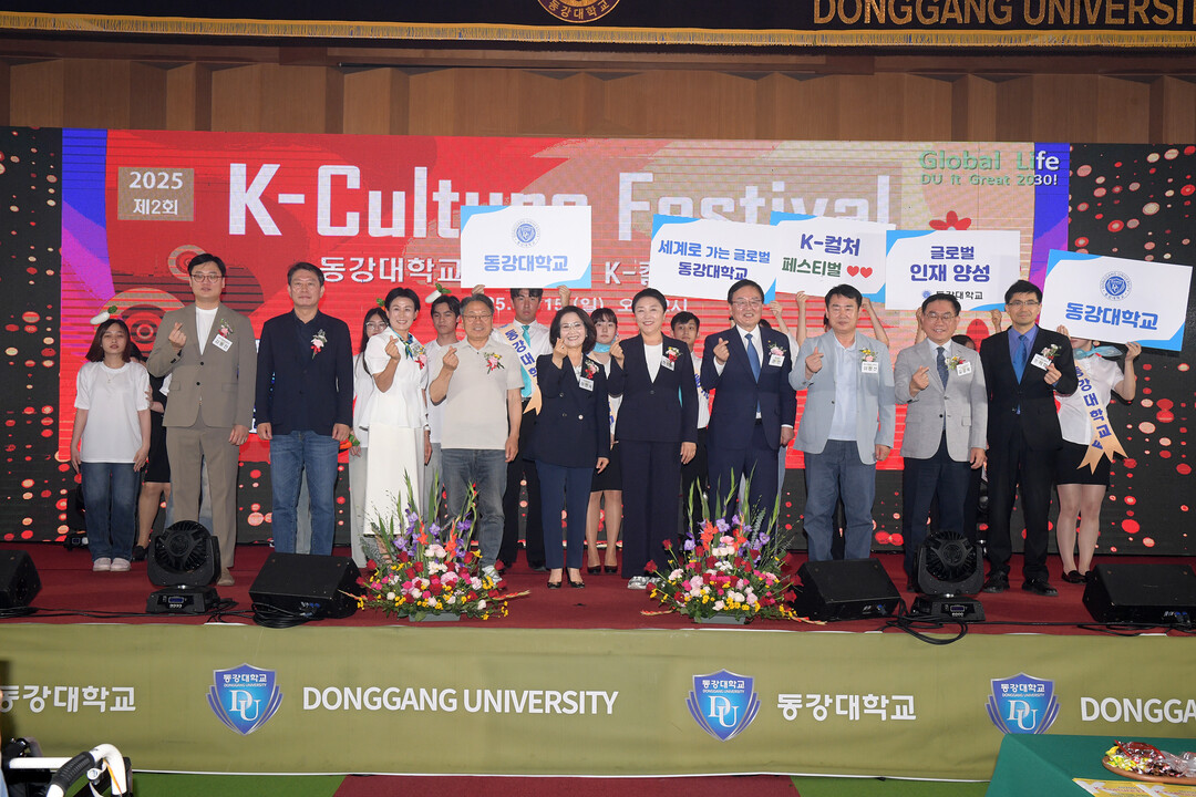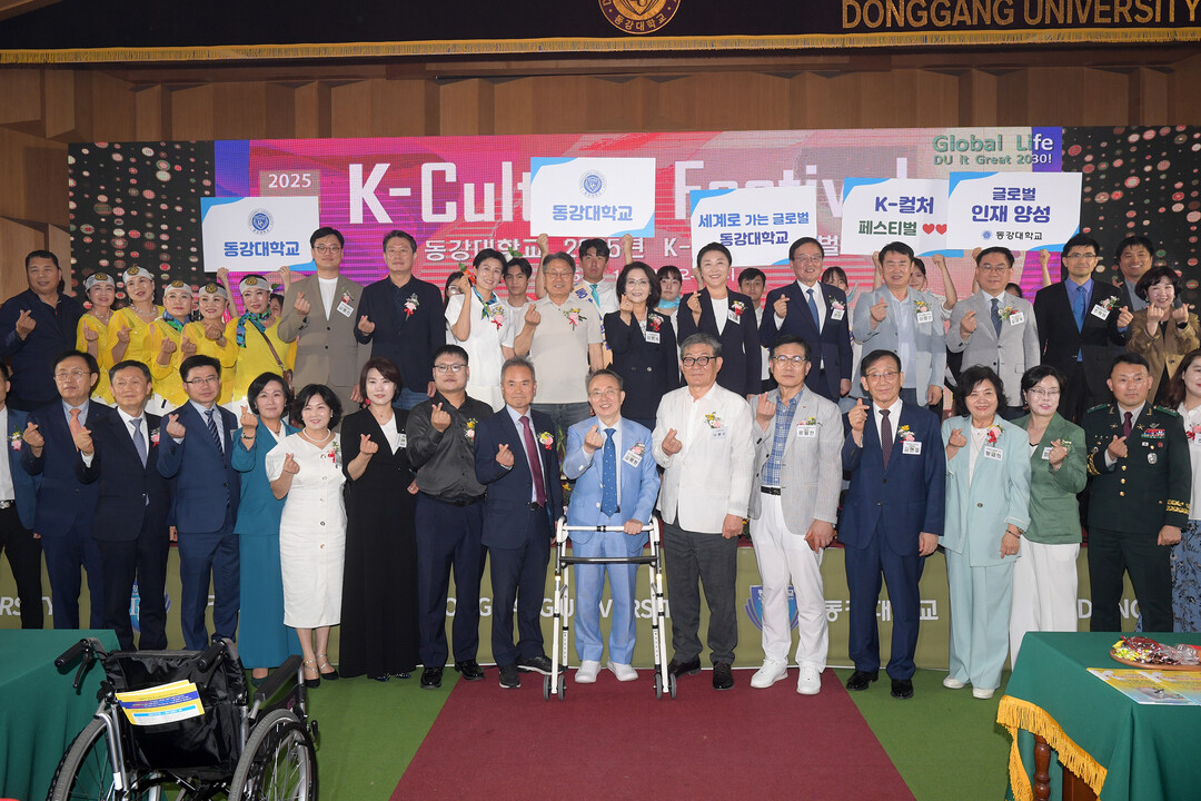 | ▲ 강기정 광주광역시장이 15일 오후 동강대학교 나이팅게일홀에서 열린 2025 제2회 K-컬처 페스티벌에 참석해 축사 한 뒤 참석자와 기념 촬영을 하고 있다. [광주광역시 제공] |