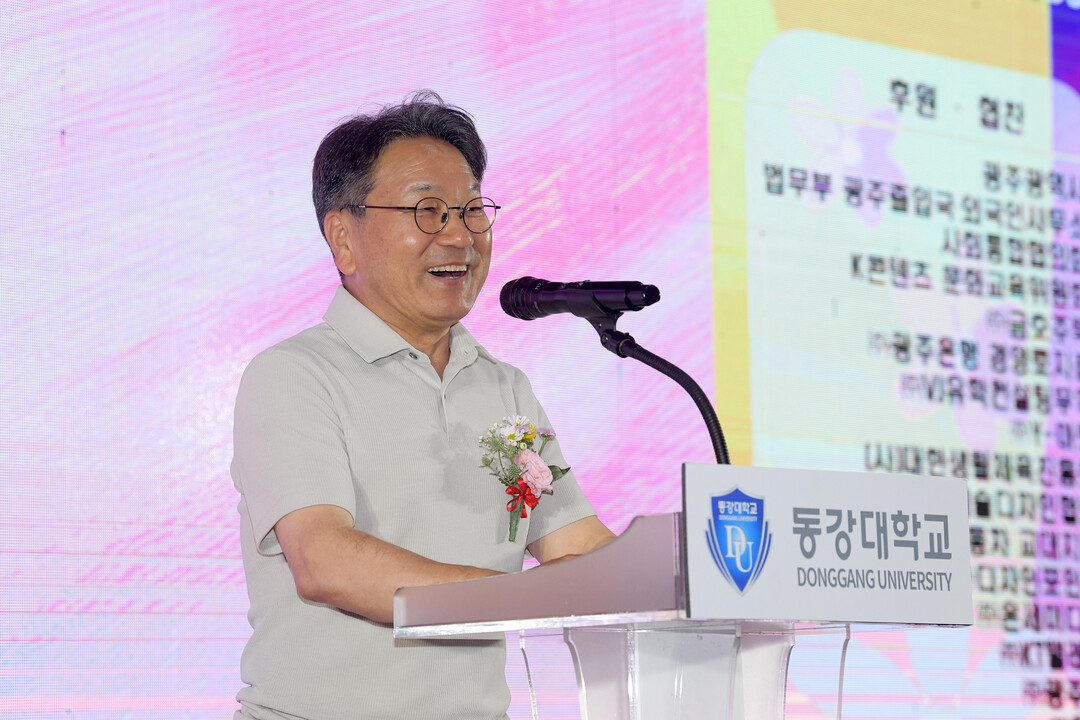 | ▲ 강기정 광주광역시장이 15일 오후 동강대학교 나이팅게일홀에서 열린 2025 제2회 K-컬처 페스티벌에 참석해 축사를 하고 있다. [광주광역시 제공] |