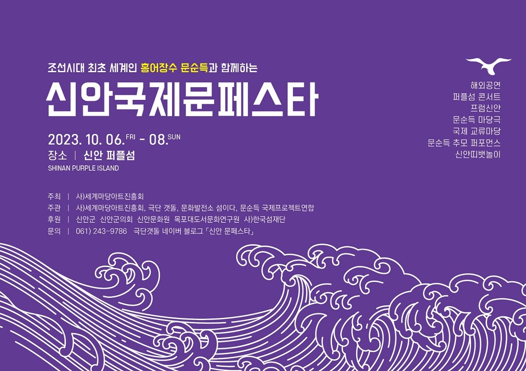 전남 신안군이 (사)세계마당아트진흥회 주관으로 오는 6일부터 8일까지 안좌면 퍼플섬 일원에서 ‘2023 신안 국제 문페스타’가 열린다고 밝혔다.
