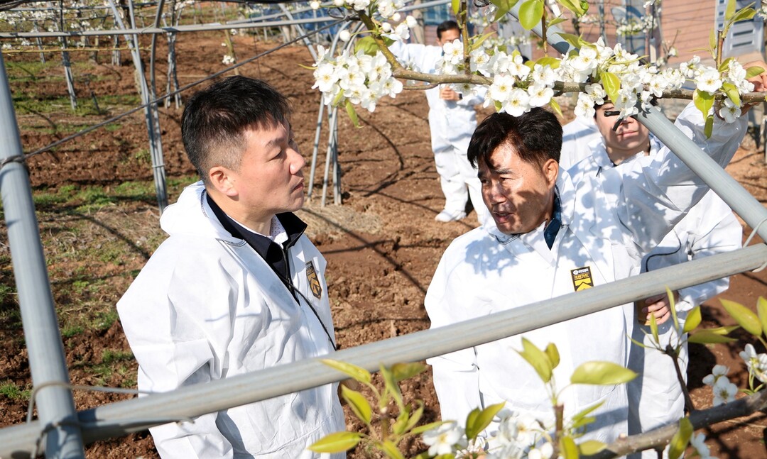 박범수 농림축산식품부 차관이 지난 15일 전남 나주를 찾아 이상 저온으로 인한 냉해 피해와 배 생육 상황을 점검했다.