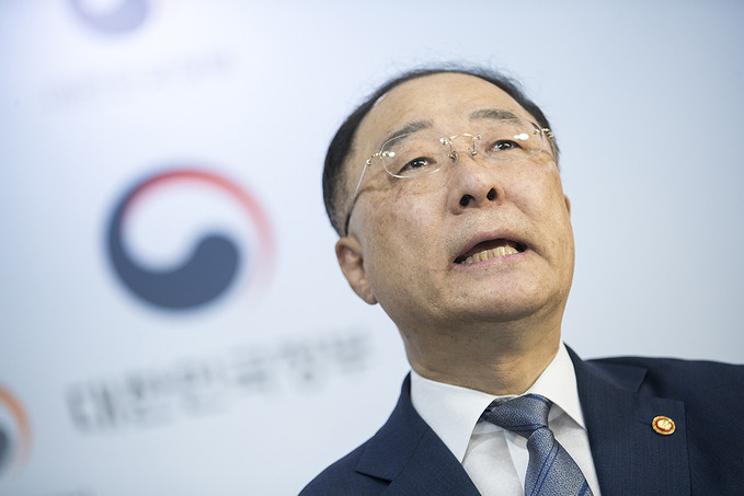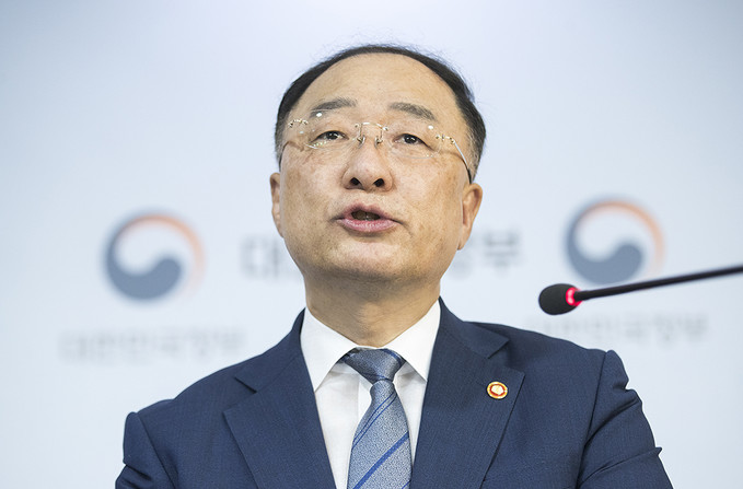 홍남기 경제부총리 겸 기획재정부 장관이 2일 오후 서울 종로구 정부서울청사에서 '일본 정부의 백색국가 배제 등 수출규제 및 보복조치 관련' 브리핑을 하고 있다.