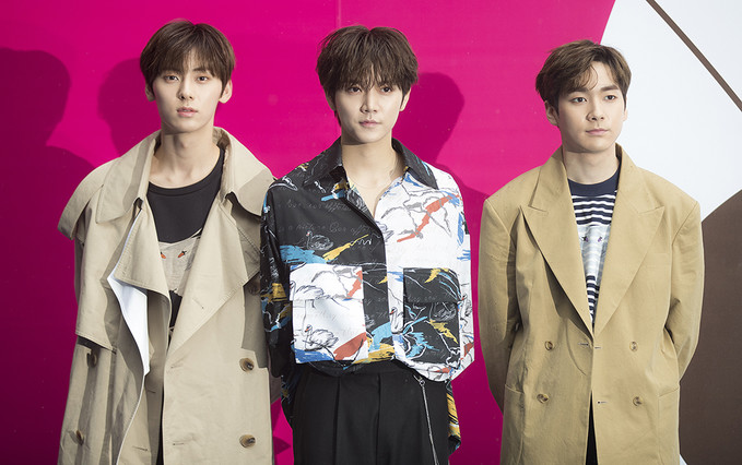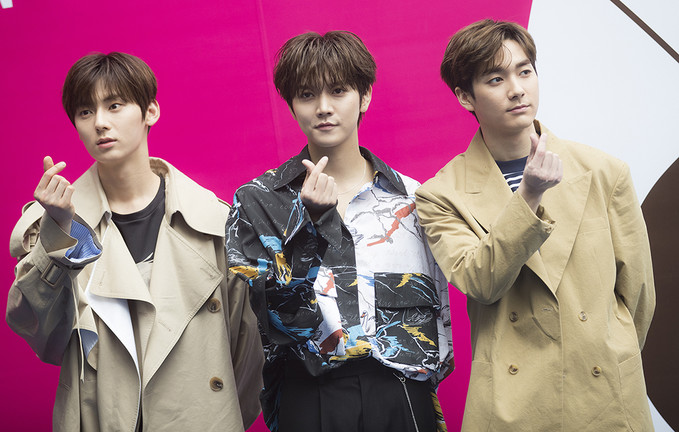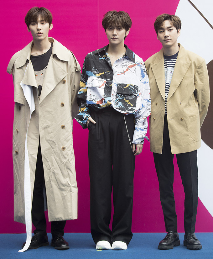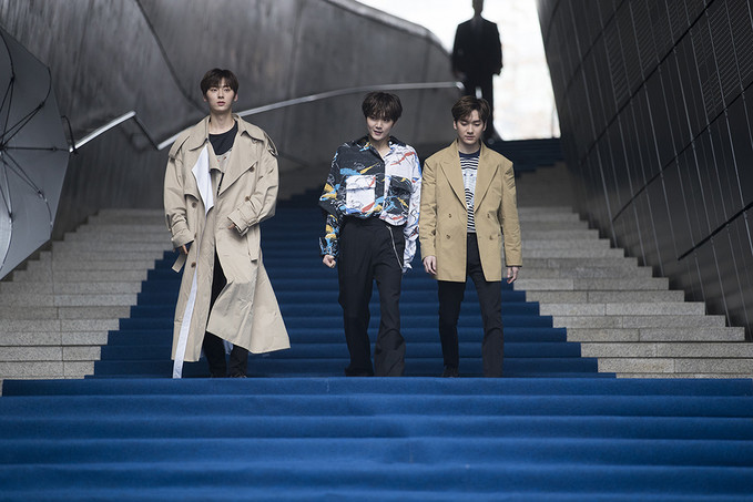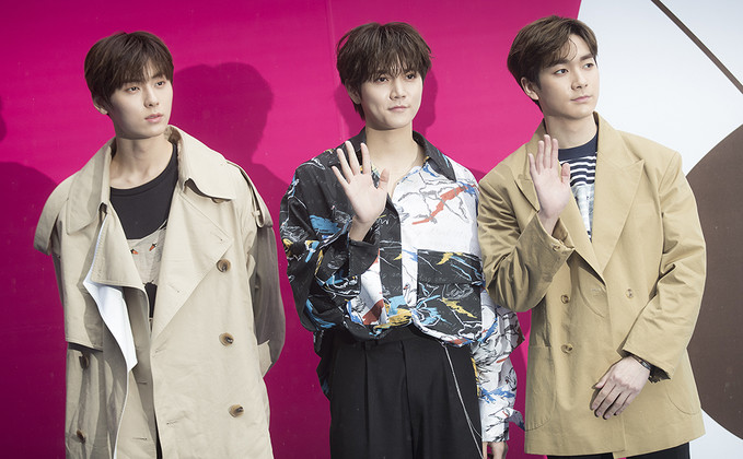 뉴이스트 황민현, 렌, 아론이 20일 오후 서울 중구 동대문디자인플라자(DDP)에서 열린 '2019 F/W 서울패션위크' BIG PARK(빅팍) 패션쇼에 참석해 포토타임을 가지고 있다.