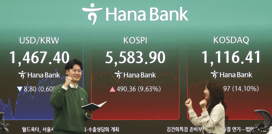 코스피는 5일 전일 대비 9.63% 오른 5583.90으로 장을 마감했다. 시가총액 상위 종목들이 전부 상승세를 기록했다. 삼성전자(+11.27%), SK하이닉스(+10.84%), SK스퀘어(+11.64%) 등은 두 자릿수 상승률로 반등했다.