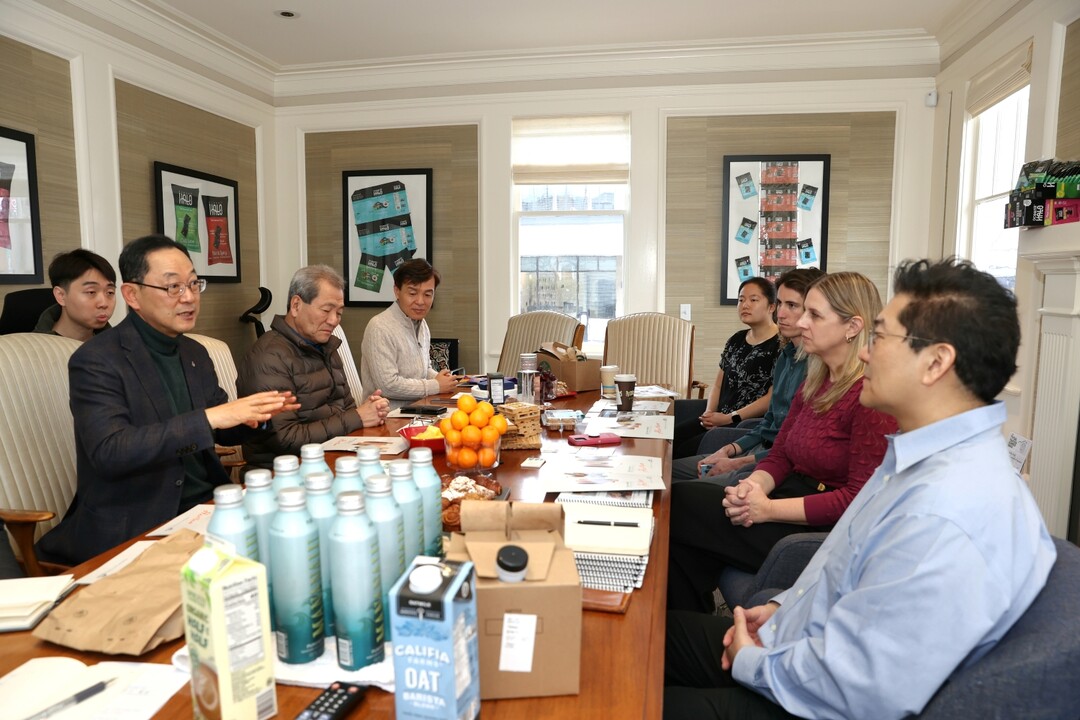 | ▲ 현지시간 10일 명현관 전남 해남군수가 뉴프론티어푸드사를 방문해 해남쌀의 수출을 위해 우수성을 설명하고 있다. [해남군 제공] |