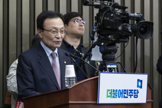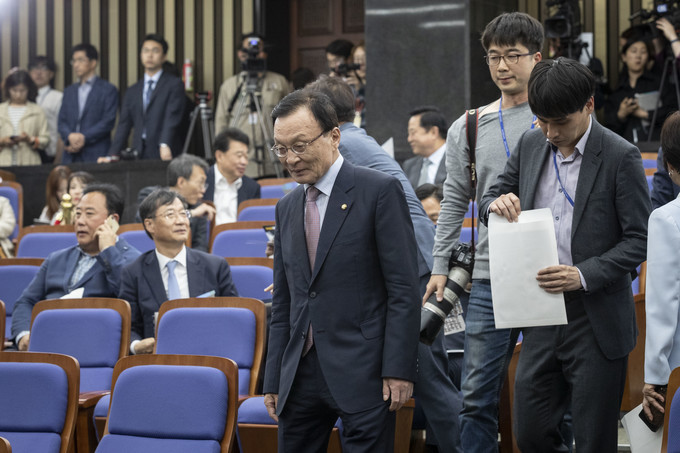 이해찬 더불어민주당 대표가 8일 오후 서울 여의도 국회에서 열린 더불어민주당 제4기 원내대표 선출을 위한 의원총회에 참석해 인사말을 하고 있다.