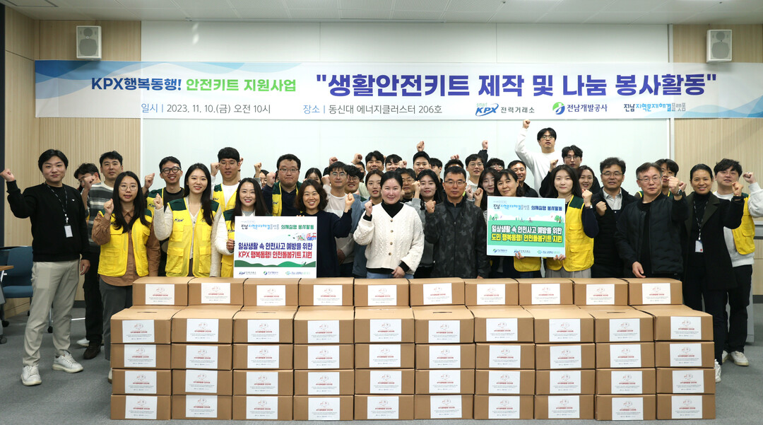 전남개발공사는 협업의제인 ‘행복동행! 안전키트 지원과 마인드 클리닉 운영’ 실행을 위해 으쓱(ESG)봉사단을 중심으로 한국전력거래소, 전남지역문제해결플랫폼과 함께 나주·목포 지역 취약계층 130가구에 생활안전키트를 전달했다.