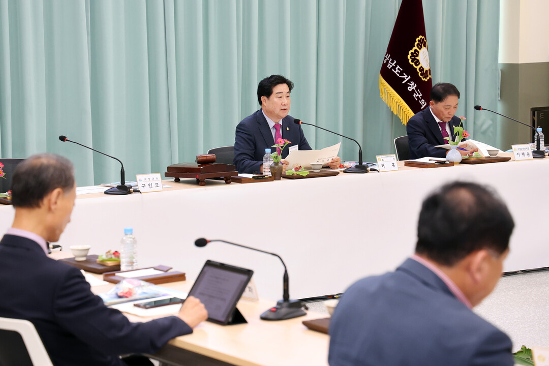 | ▲ 허홍 회장이 경남시군의회의장협의회 정례회의를 주재하고 있다. [밀양시의회 제공] |