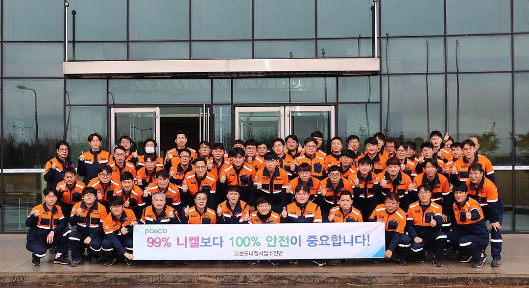 | ▲ 광양제철소 고순도니켈사업추진반이 제 1회 안전소통행사를 개최한 뒤 기념촬영을 하고 있다. [광양제철소 제공] |