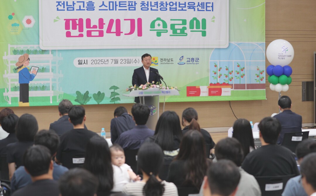 | ▲ 명창환 전남도 행정부지사가 23일 고흥 스마트팜 청년창업 보육센터에서 열린 전남 제4기 교육생 수료식에 참석, 축사를 하고 있다. [전남도 제공] |