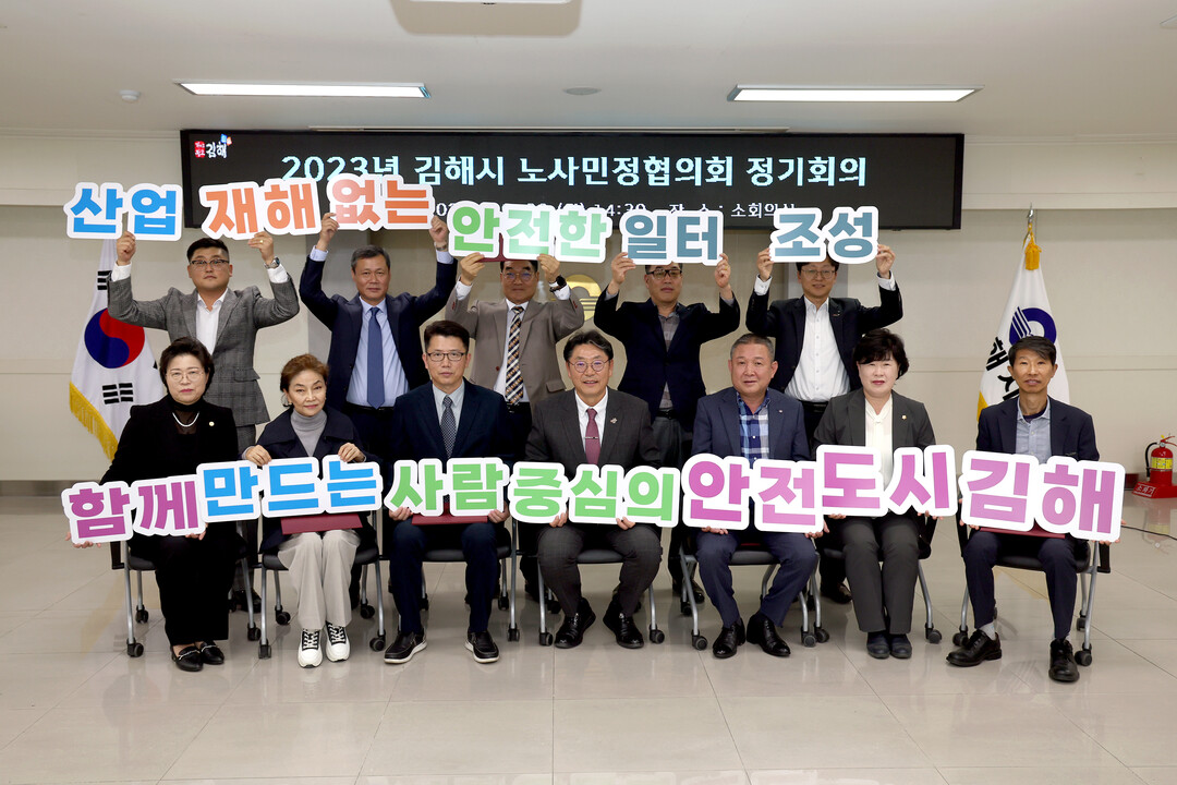 경남 김해시 노사민정협의회가 30일 시청 소회의실에서 정기회의를 열고 ‘산업재해 예방 및 안전한 일터 조성’을 위한 공동선언문을 채택했다.
