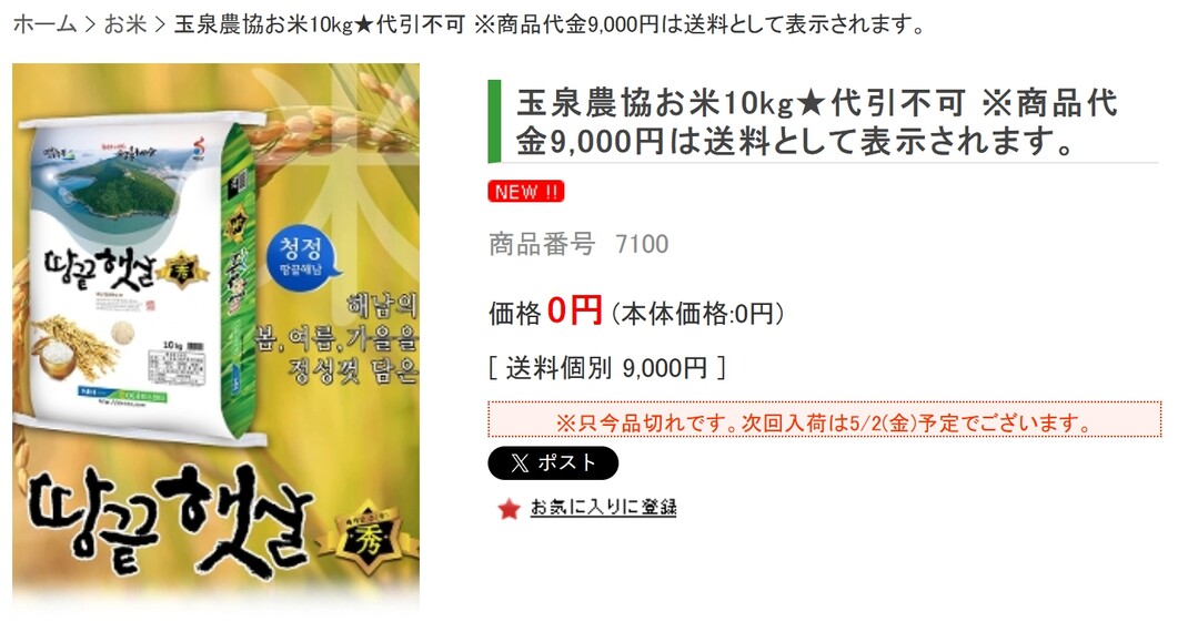 가격은 10㎏ 기준으로 세금과 배송료를 포함해 9000엔(9만 원 가량)에 판매되고 있다.