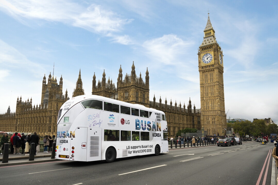 26일 LG에 따르면 23일(현지시간)부터 영국 런던에서는 부산엑스포 유치 응원 메시지를 부착한 2층 버스 210대가 운행 중이다.