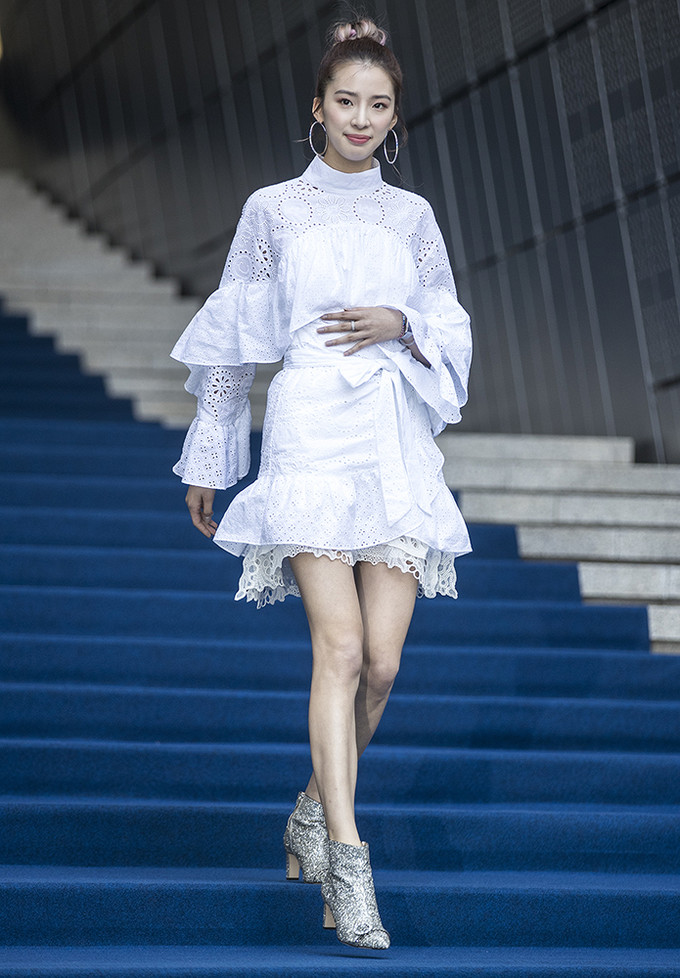 모델 아이린이 19일 오전 서울 동대문디자인플라자(DDP)에서 열린 '헤라서울패션위크 S/S 2019’ 카이(KYE) 패션쇼에 참석해 포토타임을 가지고 있다.
