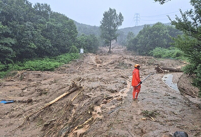 시간당 최대 100㎜ 집중호우가 내린 경남 산청군 산청읍에서 산사태로 인해 1명이 숨지고 4명이 실종됐다. 1명은 심정지로 병원으로 옮겨져, 위독한 상태다. 산청군 전 지역과 함께 합천군 합천읍에는 군민 대피령이 내려졌다.